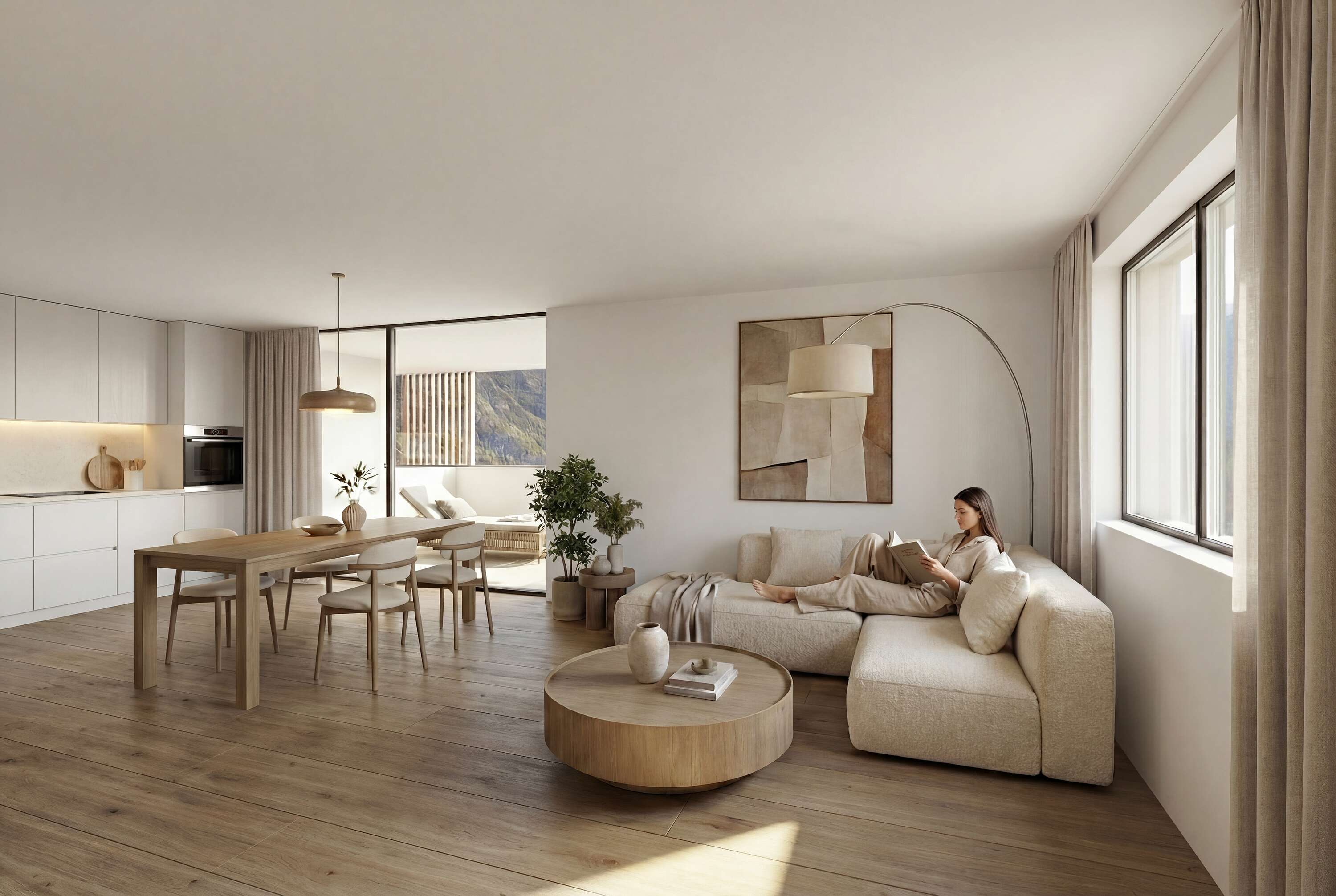 Alle Wohnungen überzeugen durch eine optimale Südausrichtung mit sonnigen Südterrassen, die zusätzlichen Wohnraum im Freien bieten und einen freien Blick auf die umliegende Berglandschaft ermöglichen.