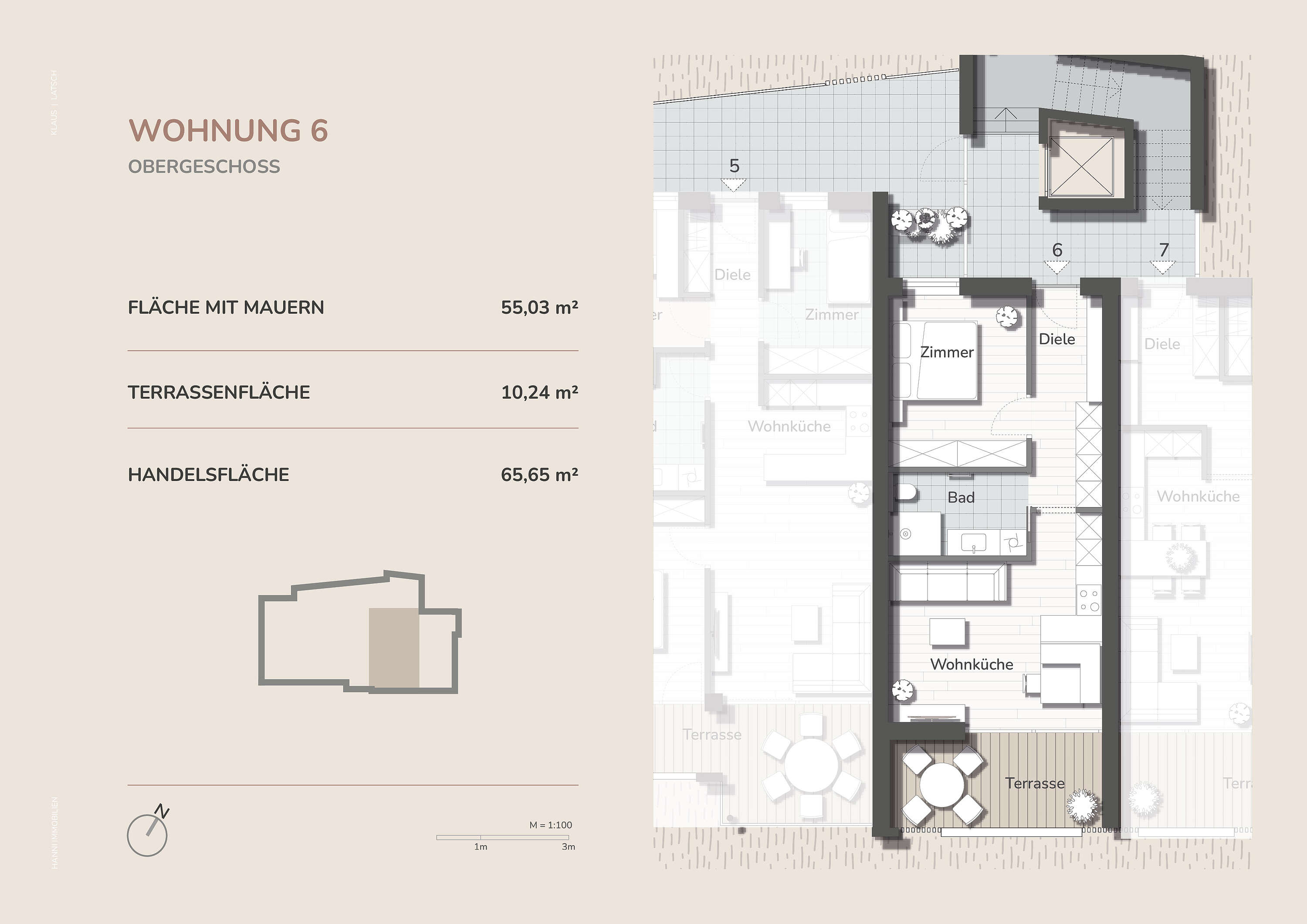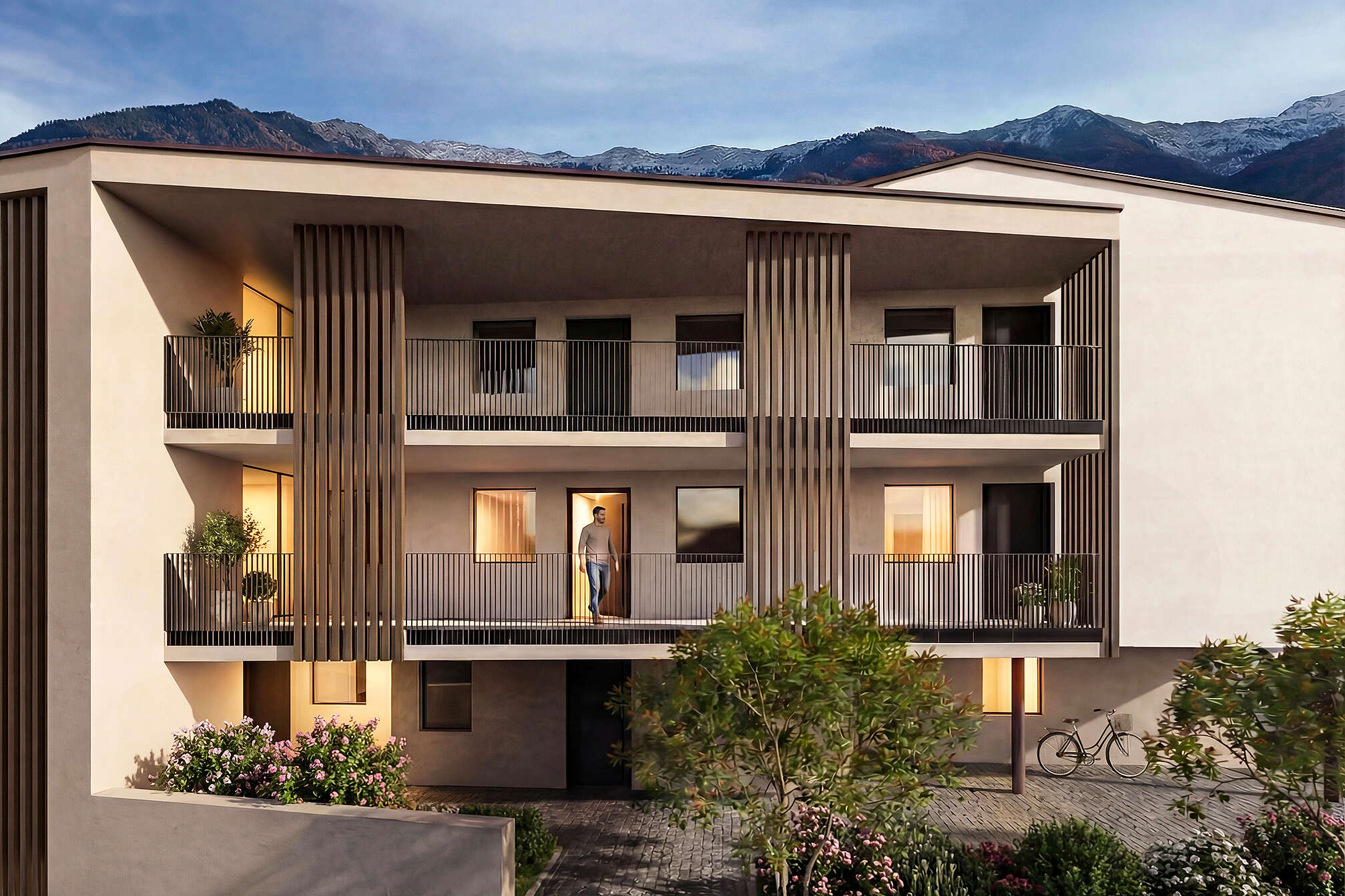 Alle Wohnungen überzeugen durch eine optimale Südausrichtung mit sonnigen Südterrassen, die zusätzlichen Wohnraum im Freien bieten und einen freien Blick auf die umliegende Berglandschaft ermöglichen.